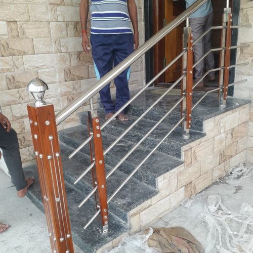 Wood Pillar Glass Staircase Railing